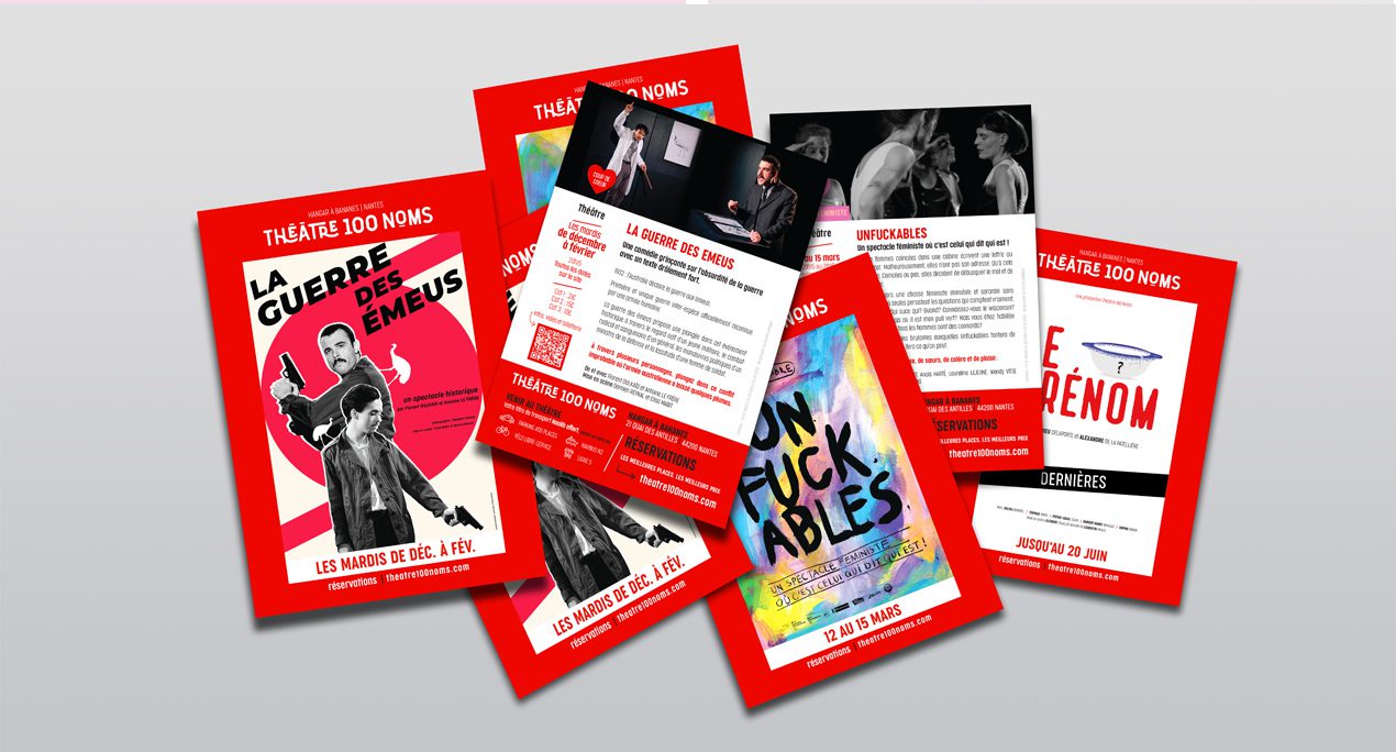 Depuis peu, j’ai l’immense plaisir de travailler sur la communication visuelle du Théâtre 100 noms. Vous le savez probablement, mais je souhaite développer mon activité de graphiste freelance à Nantes autour de projets liés au domaine de la culture. Avant de vous en dire davantage, laissez-moi vous présenter ce lieu situé à Nantes proche du Hangar à Bananes.